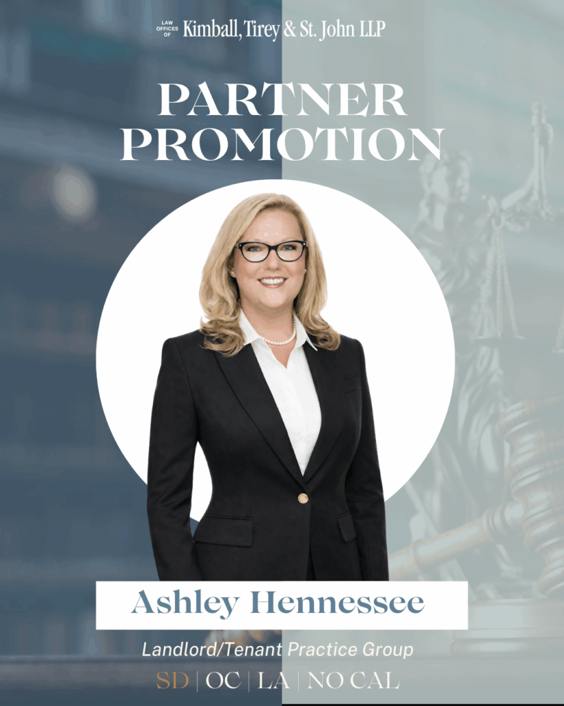Our Landlord/Tenant Practice Group is excited to announce its newest partner, Ashley B. Hennessee. Ms. Hennessee brings over a decade of experience representing lenders and creditors in real estate and default-related litigation throughout California. Her trusted role in discovery and motion practice and her commitment to exceptional client service make this promotion well-deserved.